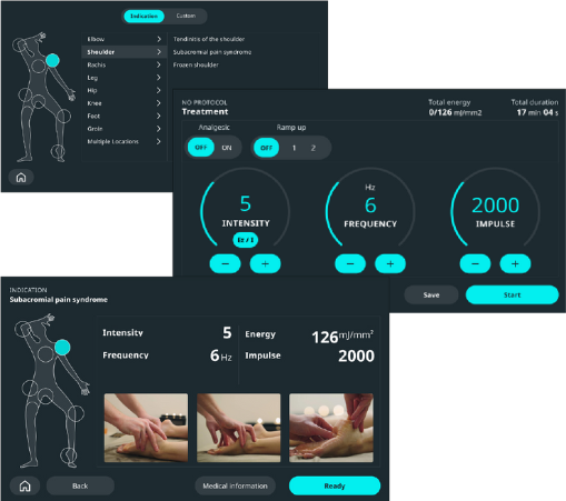 Il risultato è un trattamento di straordinaria efficacia su patologie complesse (come calcificazioni, ritardi di consolidazione ossea, pseudoartrosi) che mantiene però un comfort elevato per il paziente, rendendo la terapia ben tollerata anche dai soggetti più sensibili. Il sistema è progettato per ottimizzare il flusso di lavoro del professionista grazie a un manipolo intelligente e un’interfaccia intuitiva che guida nella scelta dei protocolli clinici.