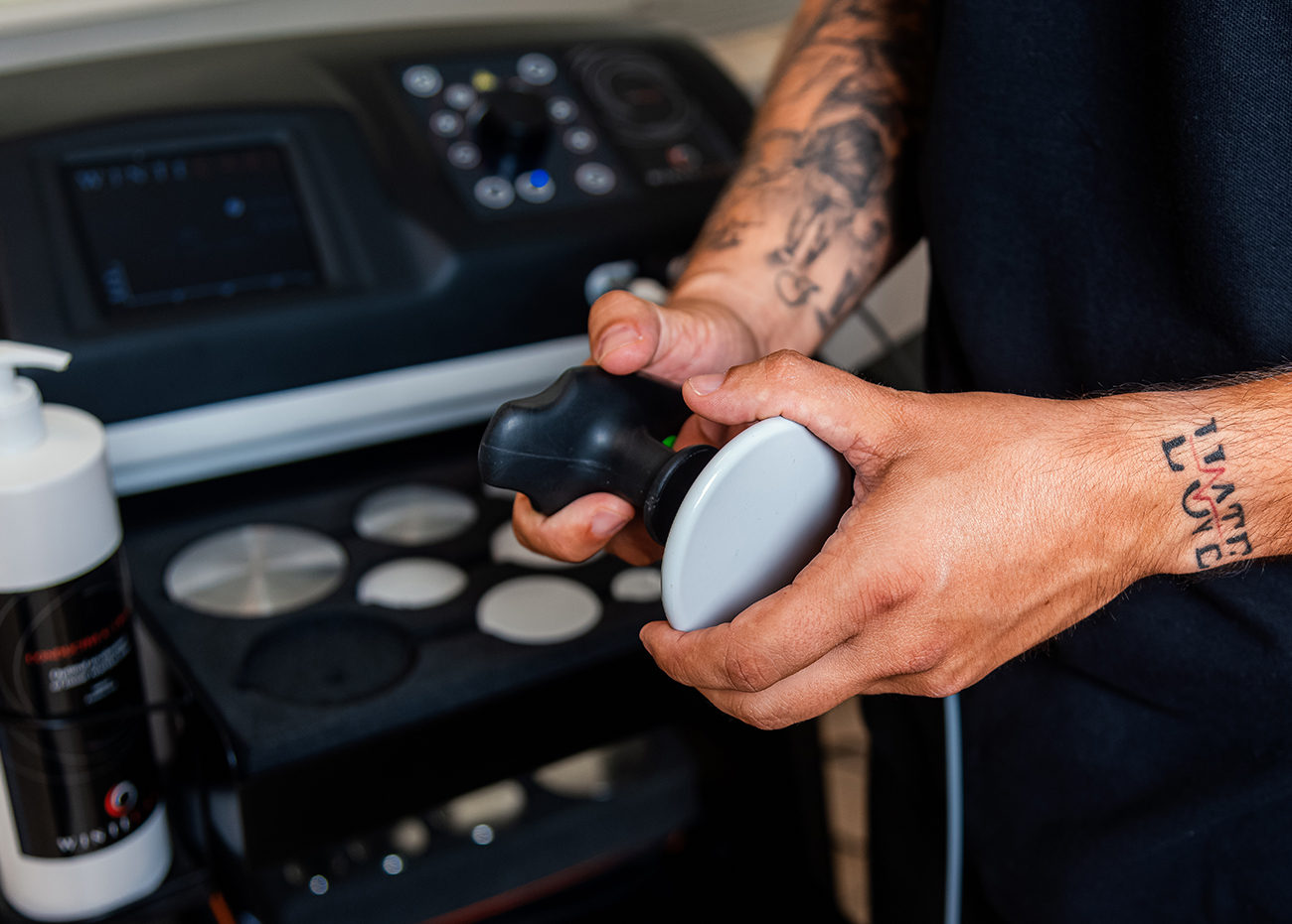 - Tecnologia “Cream-Free”: La possibilità di lavorare senza crema conduttiva permette prese manuali salde e precise, potenziando l’efficacia di manipolazioni fasciali e strutturali durante l’erogazione energetica.